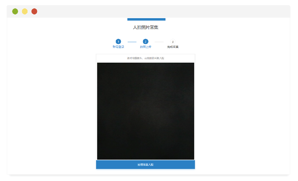 1、学生进入人脸采集的入口,登录自己的考试账号,然后拍照上传清晰的人脸照片。