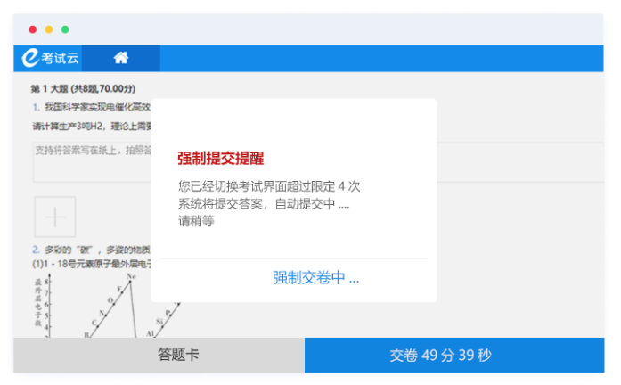 3)、启用防切屏设置,禁止学生在考试过程中切换考试页面,否则强制交卷。