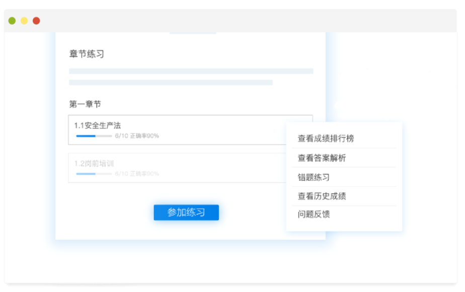 3、竞赛比拼:使用考试云的章节练习功能来创建竞赛进行答题,可以容纳大量试题,会显示所有参赛者的正确率排行榜,适用于比拼答题数量、正确率、用时等形式的竞赛。