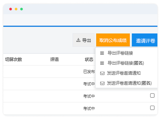 当笔试考试结束后,HR可以自己或发送答卷链接邀请其它负责人进行人工评卷,负责人无需登录系统,可在手机、PC、Pad上打开链接评卷,就能在答卷中评分及填写评语。