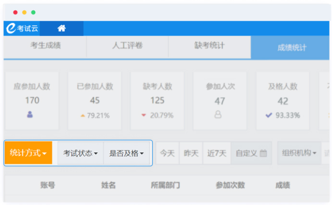考试云在线考试系统可以适用于企业招聘、校园考试、企业考核等不同业务场景,完善的考试设置,让出题组卷更高效,大量节省使用者的时间精力
