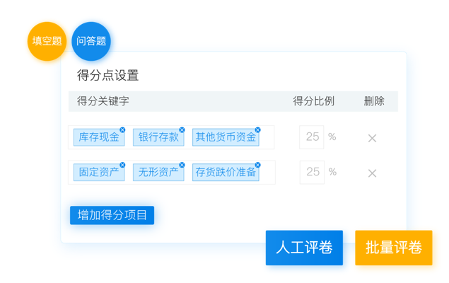 对于填写好答案和分数的基础试题,系统会自动判分。而论述题这种题型,可进行人工评卷,企业管理员可自行评卷,或以匿名的方式邀请他人评卷。