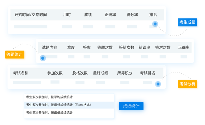 最后,在线考试系统会自动统计相关考试数据,然后生成对应的考试成绩报表、成绩统计报表、答题统计报表等,管理员能直接查看结果,节省不少时间。