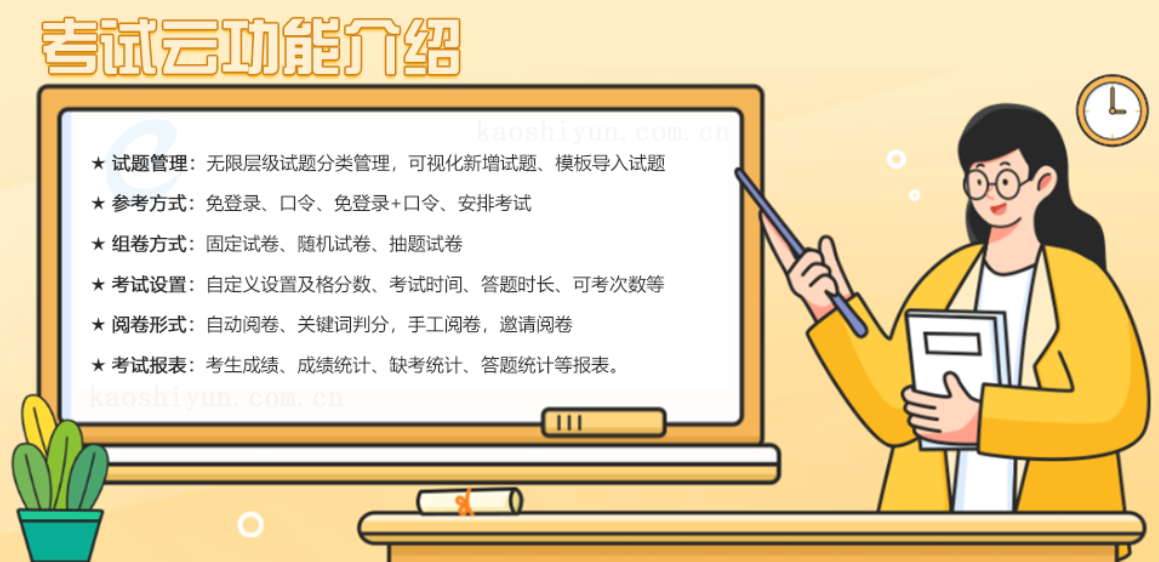 在线考试系统大大简化了传统考试模式的出题,组卷、阅卷等环节,可以节约大量的人力、物力和财力。搭建在线考试系统来完成考务工作,不仅省时省力,还能提高工作效率。