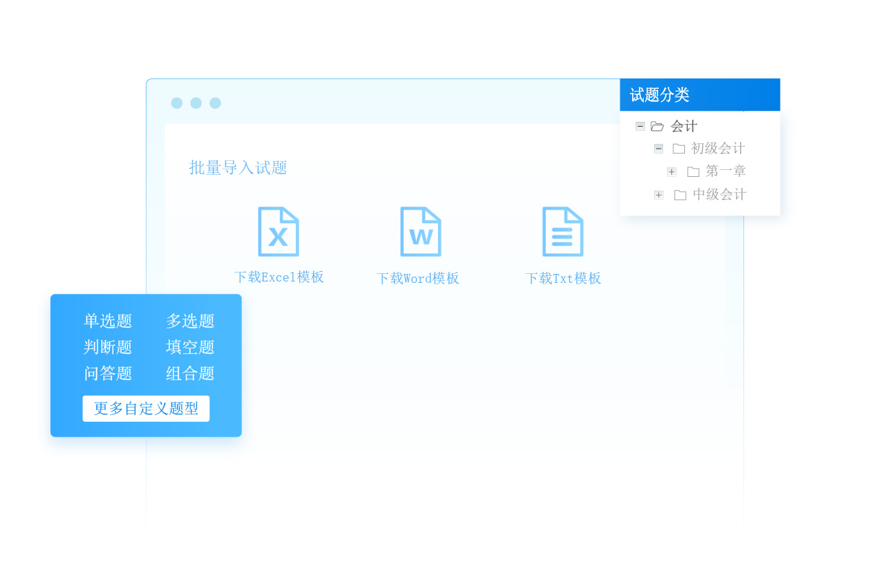在线考试系统支持多种题型,如单选、多选、填空、简答、组合、音频、图片等,可以满足不同知识竞赛的需求。同时,系统还提供了灵活的导题方式,有模板导入、批量新增、单个新增三种方式,组织者可以根据竞赛需求自行选择导题方式添加、编辑试题。这使得线上知识竞赛的题目更加多样化和全面化。