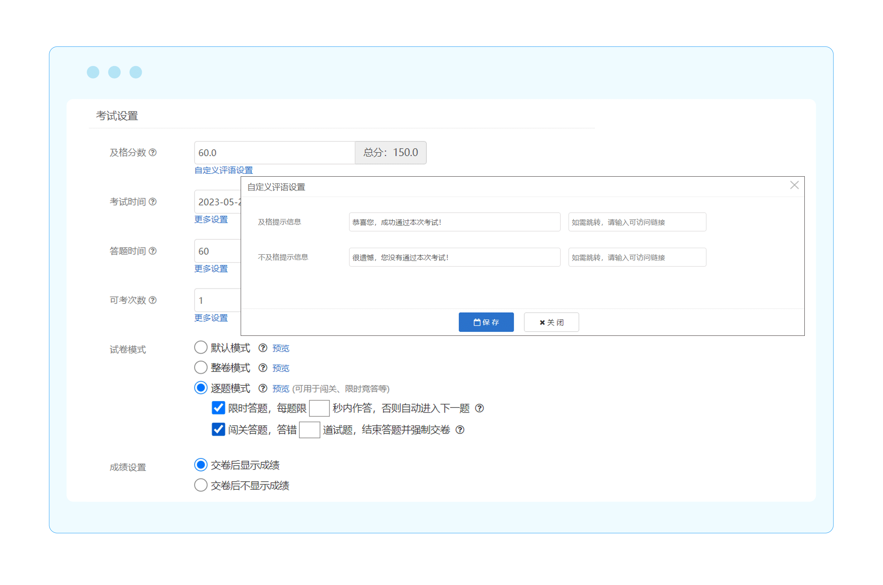 >通关答题需设定竞赛及格分数,定义跳转链接;参赛者每达到通关条件,便可以进入下一关卡的答题。