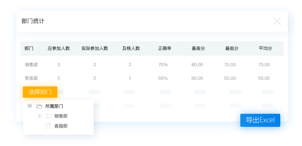 党建知识竞赛结束之后,考试云会统计每位参赛者的信息、竞赛用时、成绩、排名等数据;若是团队赛,系统还会按照不同团队统计出最高分、最低分、平均分等数据,生成清晰直观的详细报表。便于快速了解个人赛或团队赛的最终排名结果,加强党员干部的党性教育和培训。