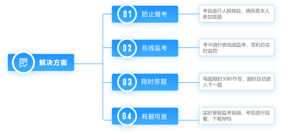 基于此,考试云团队从业务场景和需求角度出发,为客户提供如下解决方案: