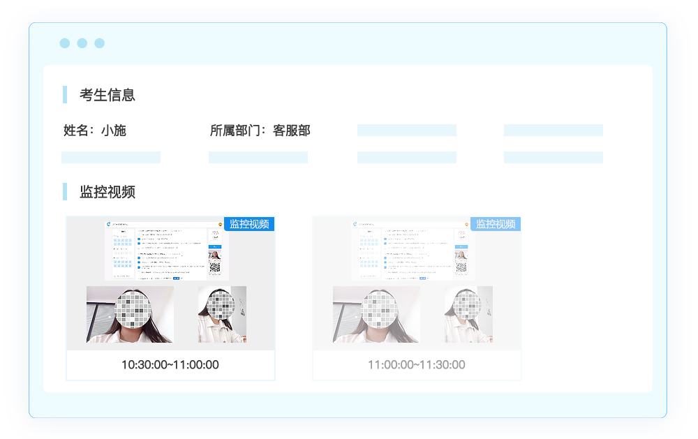 考试云对于考试过程中的音视频监考视频将进行实时录制,做到每场考试都有据可依。