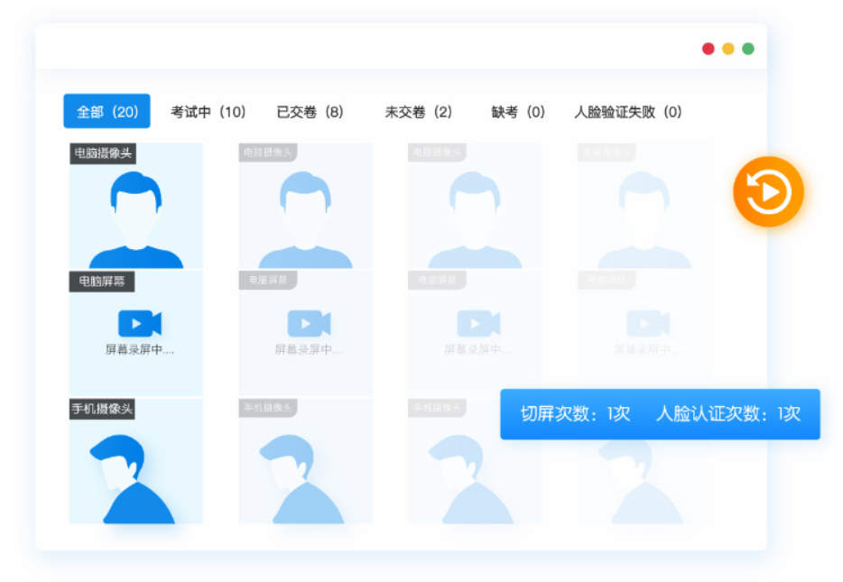 考试时三路音视频监考——实时监控应聘者考试过程,防止作弊行为