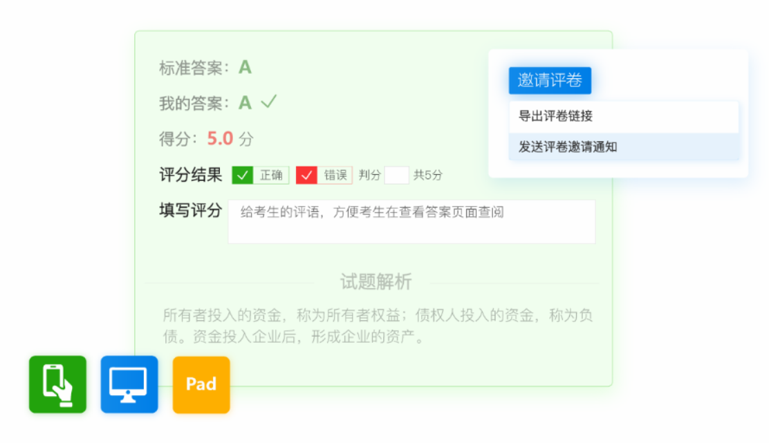 人工评卷——主观题能够人工阅卷,进行评卷判分