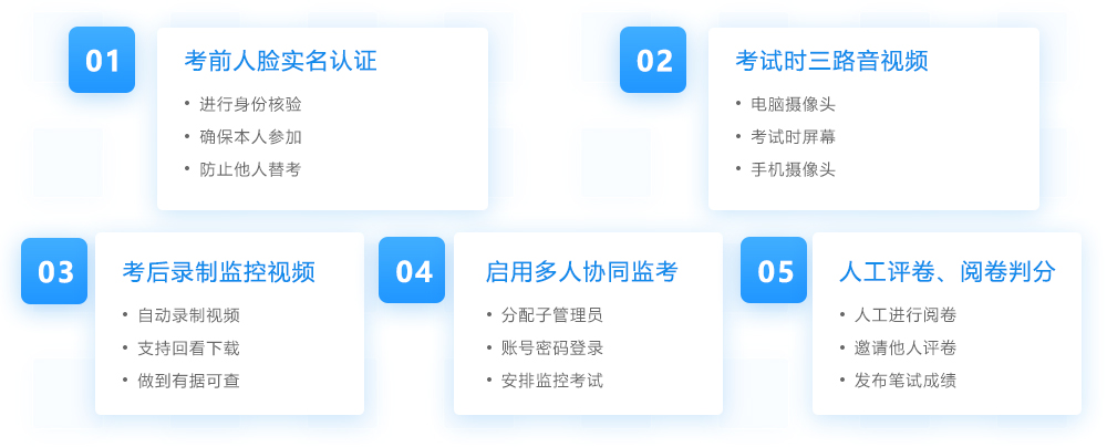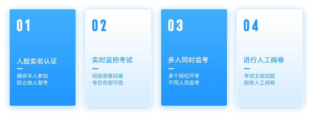 首先,需要有人脸实名认证功能,确保是本人参加考试,防止他人替考;然后,能够实时监控应聘者考试,并且考试监控视频要能录像回看,考试后有据可查;接着,有10多个岗位需要招聘笔试,不同监考人员负责监考不同的岗位;最后,考试试题有客观题和主观题,主观题能够人工阅卷。