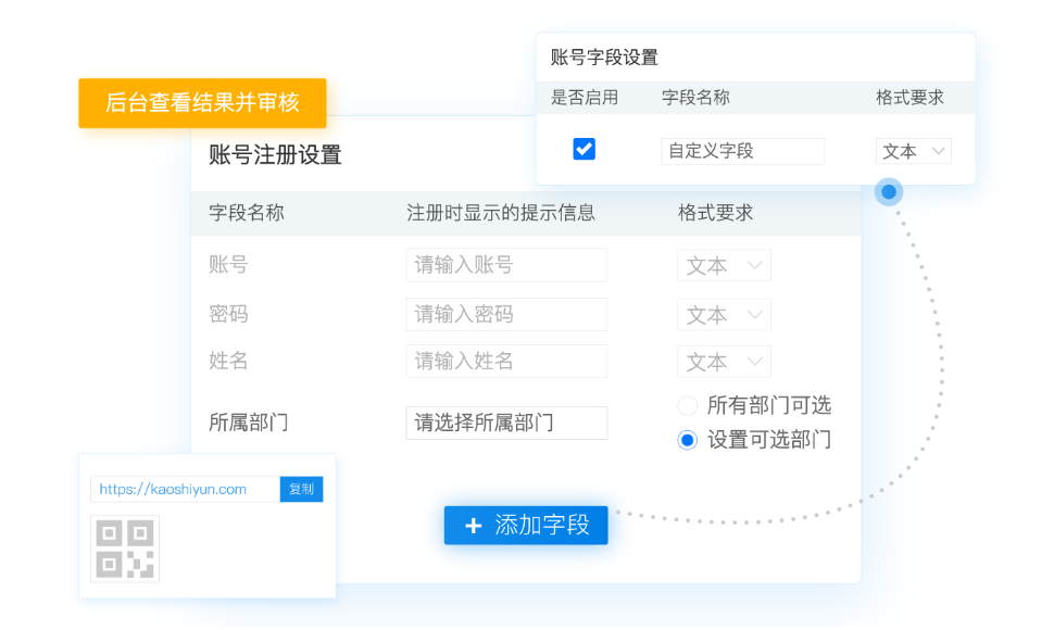 需开设系统账号注册功能,自定义账号字段填写信息,设定详细的部门、地区等分类,而后发送报名窗口,参赛者通过窗口填写信息报名,之后由人工审核参赛人员的资格是否符合竞赛条件,确保竞赛的严谨性。