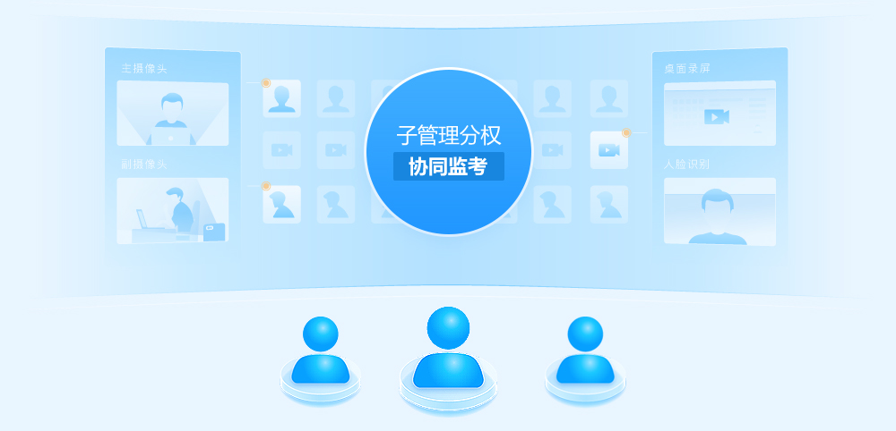 考试云专属顾问在和承办方的沟通中了解到,本次知识竞赛严肃性较高,因此即使是预选赛也需要实时在线监控,并且要能多个人同时监考,确保考试透明公正。而针对该知识竞赛的需求,考试云提供了“考试时双机位监考——多人协同监考”的方案。
