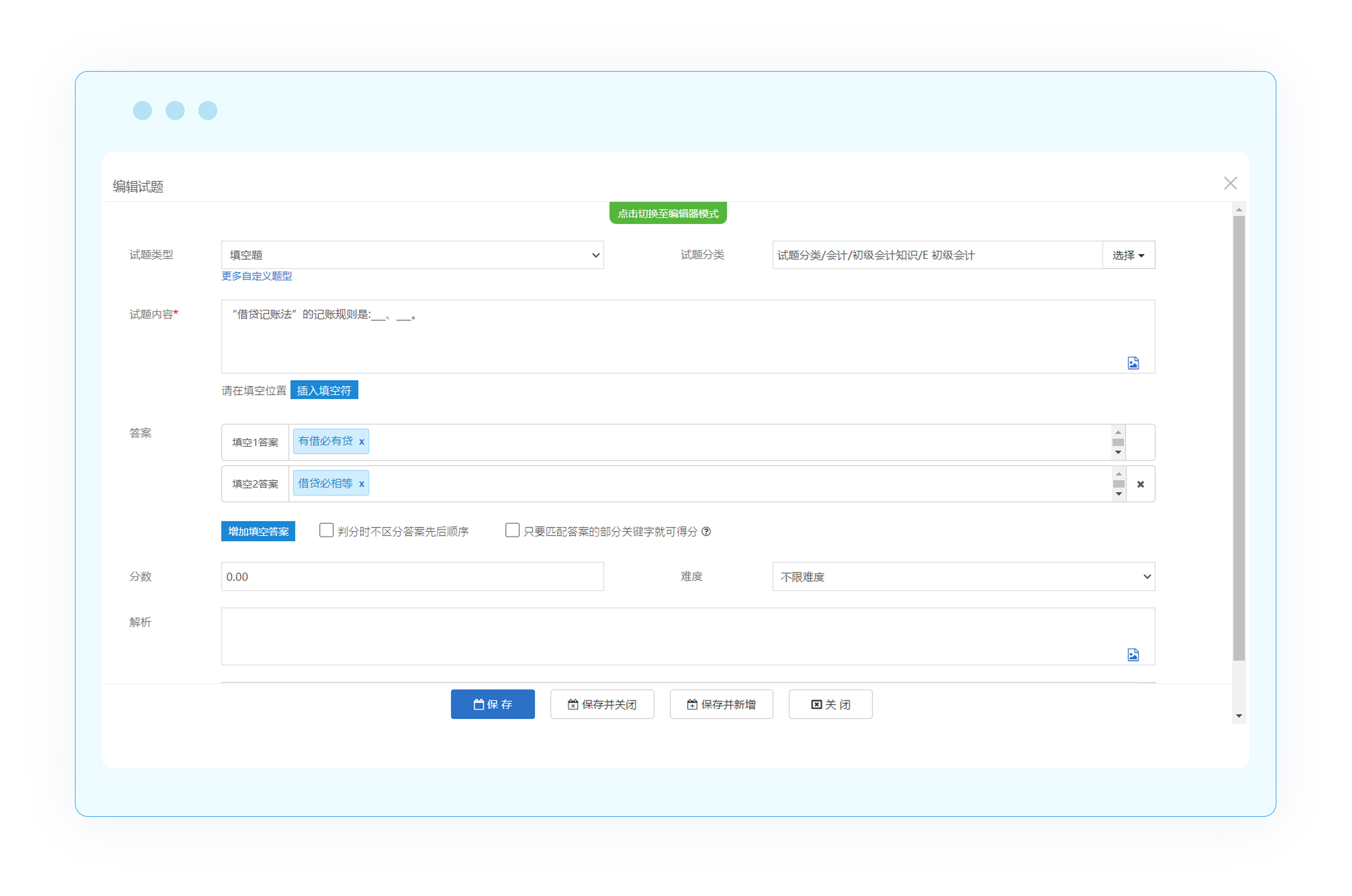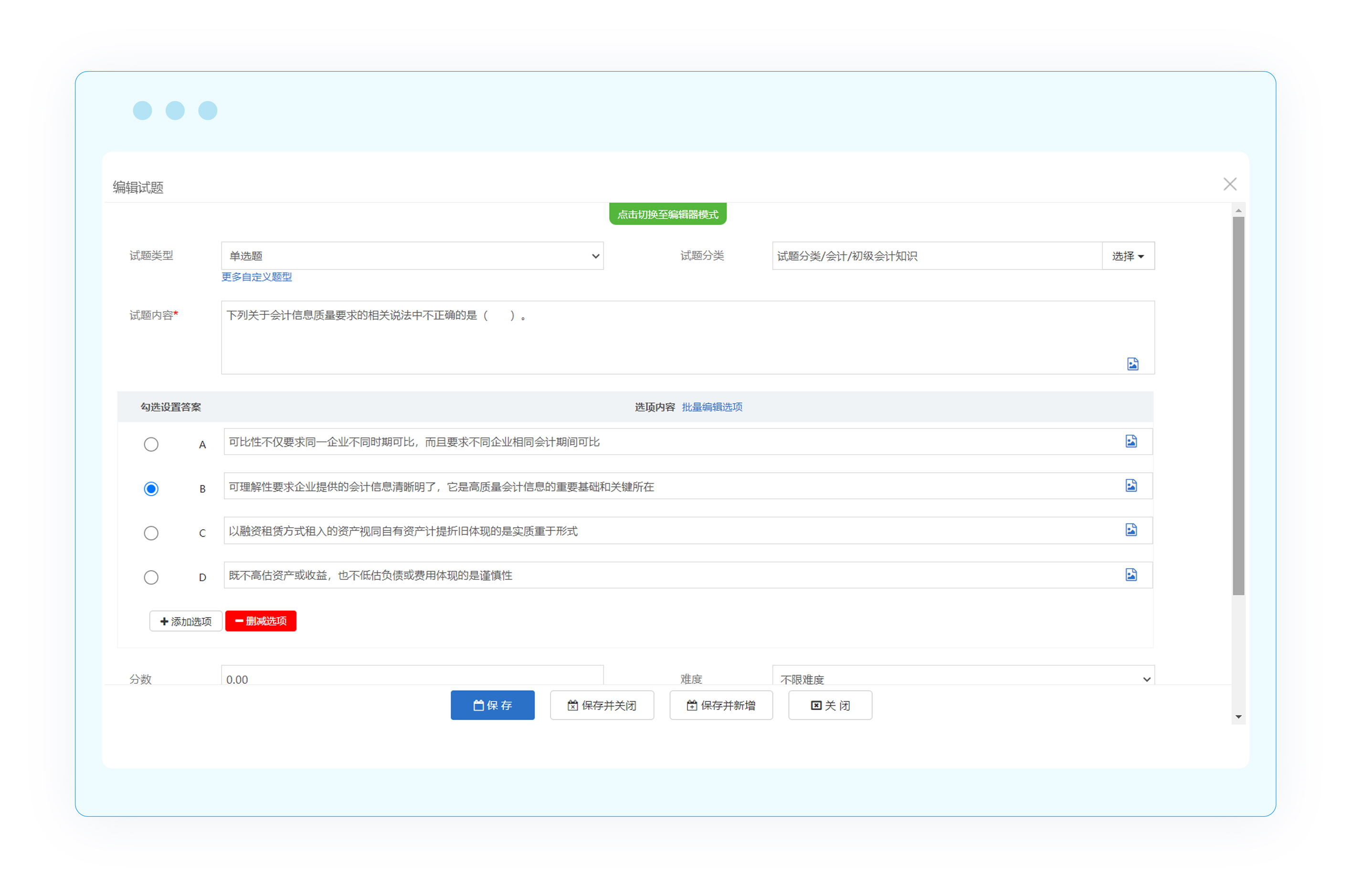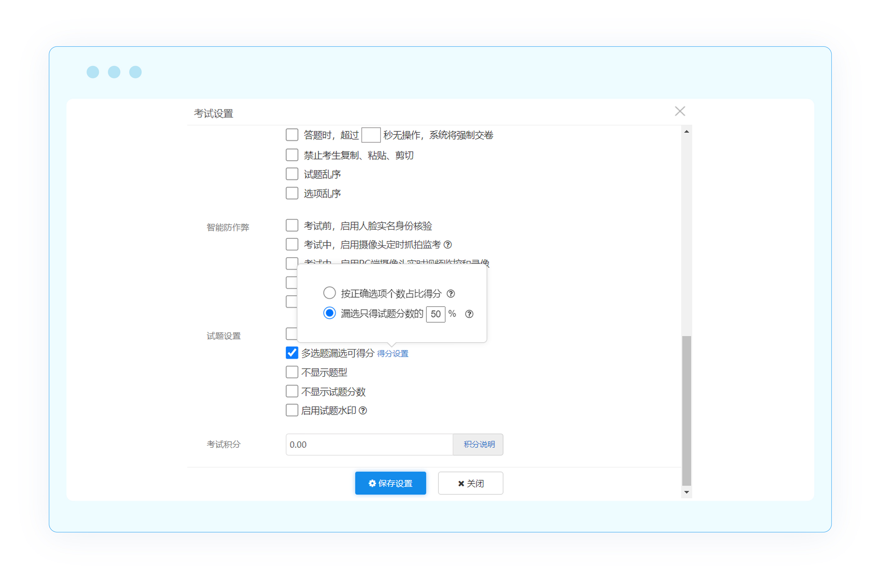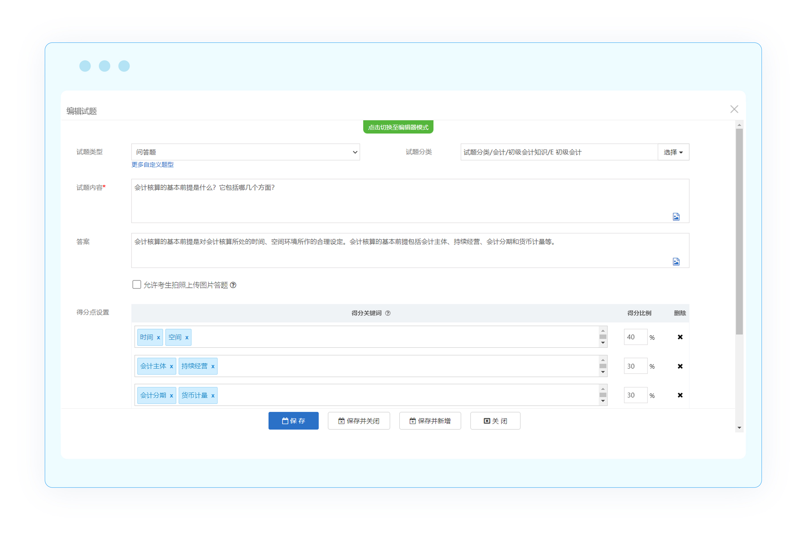 导入试题时设置自动判分机制,让学生交卷自动判分出成绩。