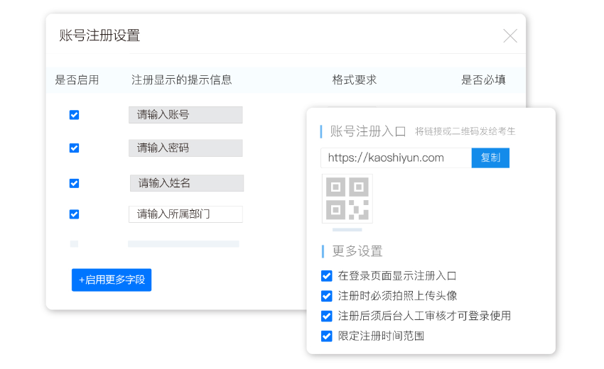 一般像员工比较多的大型企业,只一个人负责管理相对吃力,考试云可以添加多位子管理员协助管理工作,由主管理员从菜单、操作、数据范围这三个维度为子管理员分配权限,实现分工合作,大幅度提升工作效率。