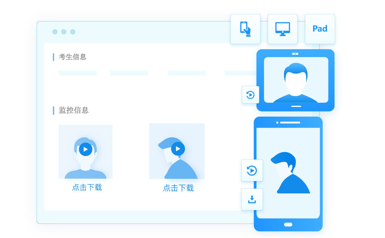 监考人员可以在后台查看每一位考生的独立监控视频,除了能实时在线监控考试外,还可以在考试结束后,回看或下载系统录制保留的监控视频,防止作弊行为。