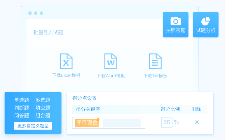 考试云通过批量上传试题、灵活组卷、自动阅卷、智能分析等功能,使得考试更加方便快捷;系统具备自动化、数据化、监控化、反作弊等多种技术手段,能够确保考试的公平性和安全性。