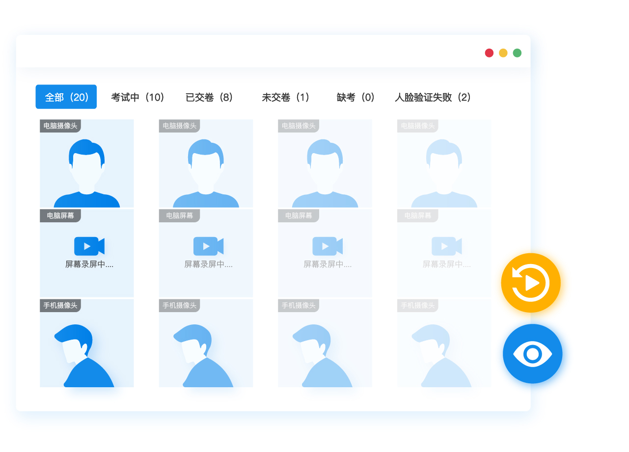 鉴于此次考试的性质,严选人才适配岗位,HR开启了严肃严格的防作弊监控,启用了考试云三路音视频实时监控与录制功能。