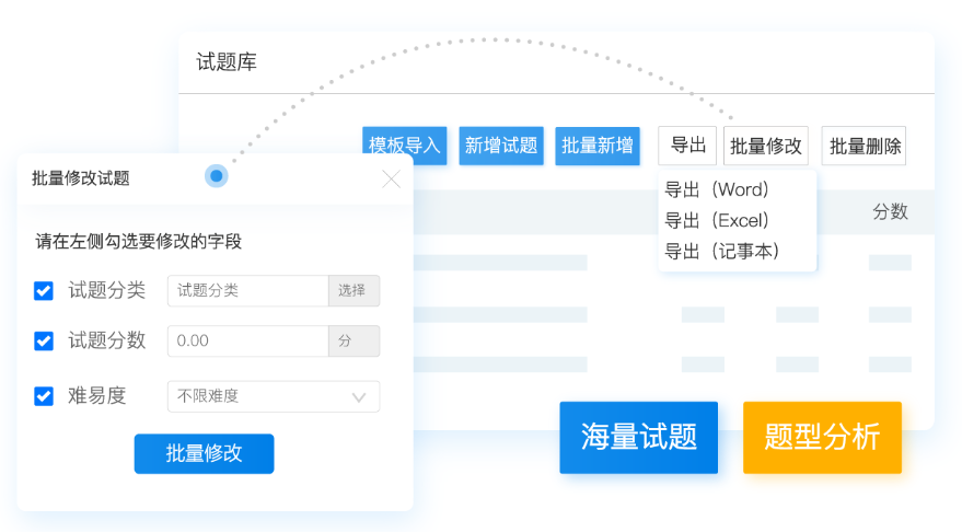 1、独立的试题库,管理多种题型试题