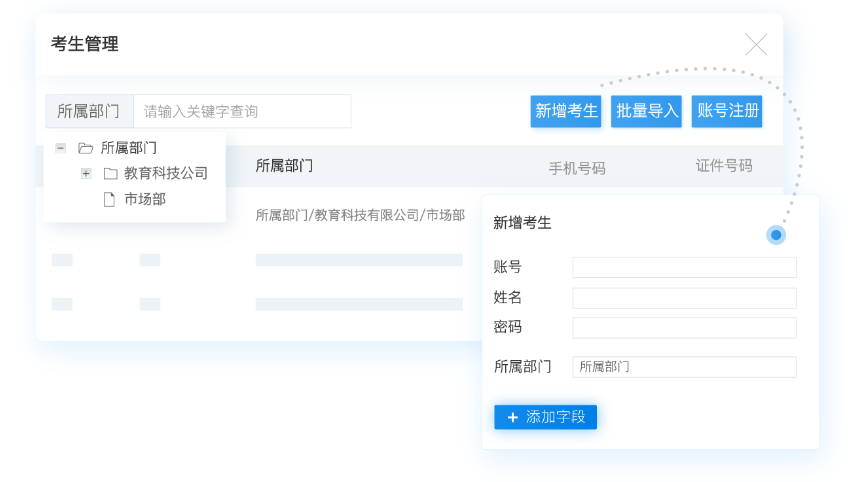 管理员可以通过在线答题系统的考生管理功能,给每个参加练习的学员创建个人使用的账号。管理员可以直接给学员创建账号,也可以让学员自主注册账号。注册好的学员账号,还能进行批量管理、分类管理、查重、预览等操作,确保学员账号正确无误,可以在创建练习时指定学员参加。