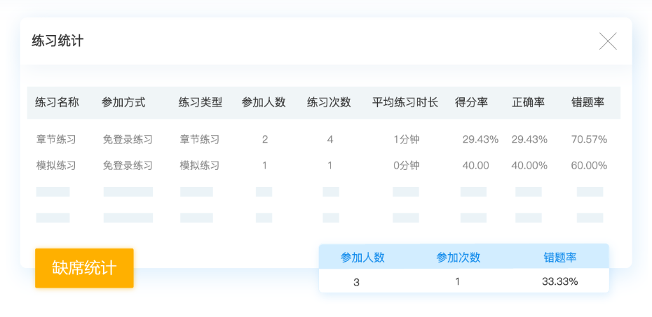 整个练习的过程,系统会实时跟踪并统计练习相关的数据,再分析生成对应的练习统计报表,管理员可以直接在后台查看每个学员的练习情况,还能查看每道试题的答题情况,方便计划后续的练习、学习计划,同时还能提高练习管理效率。