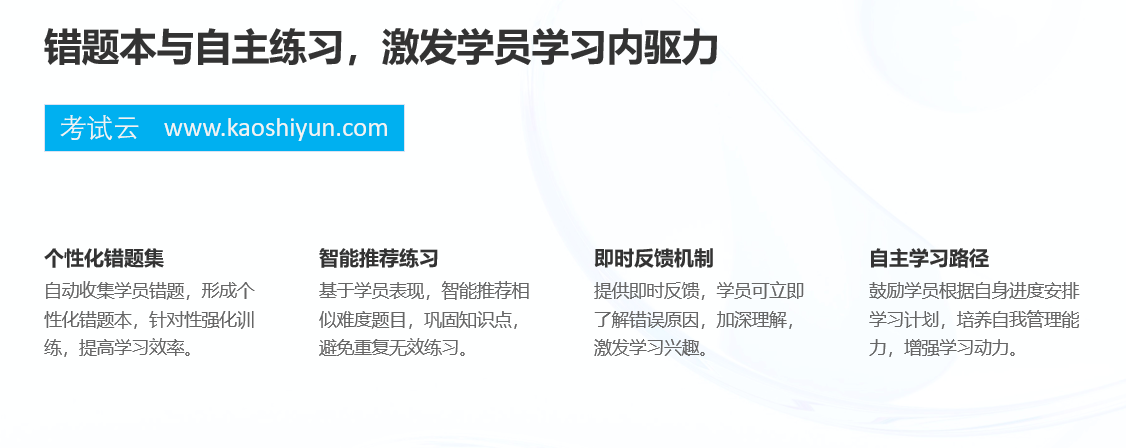 学员可通过错题本清晰看到自己的知识盲区,制定个性化复习计划。同时,系统提供学习排行榜、成就徽章、积分奖励等激励机制,增强学习成就感,激发自主学习动力,真正实现“从被动接受到主动提升”的转变。