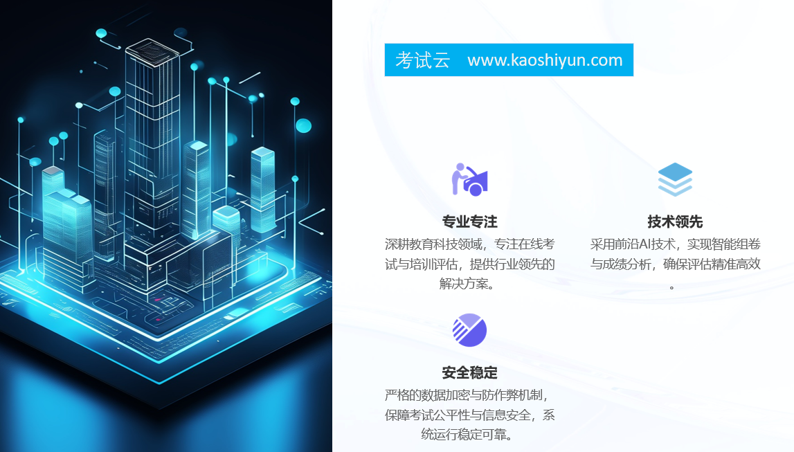 如何实现对学员知识技能水平的全面掌握?如何精准定位学习盲区?如何提升教学效率并激发学员自主学习?考试云(kaoshiyun.com),作为一款专为现代企业培训考试场景打造的智能测评与学习管理平台,考试云以“全面评估、精准定位、高效反馈、自主驱动”为核心理念,通过先进的技术手段与科学的功能设计,为企业构建起一个闭环化、数据化、智能化的培训考试新生态。