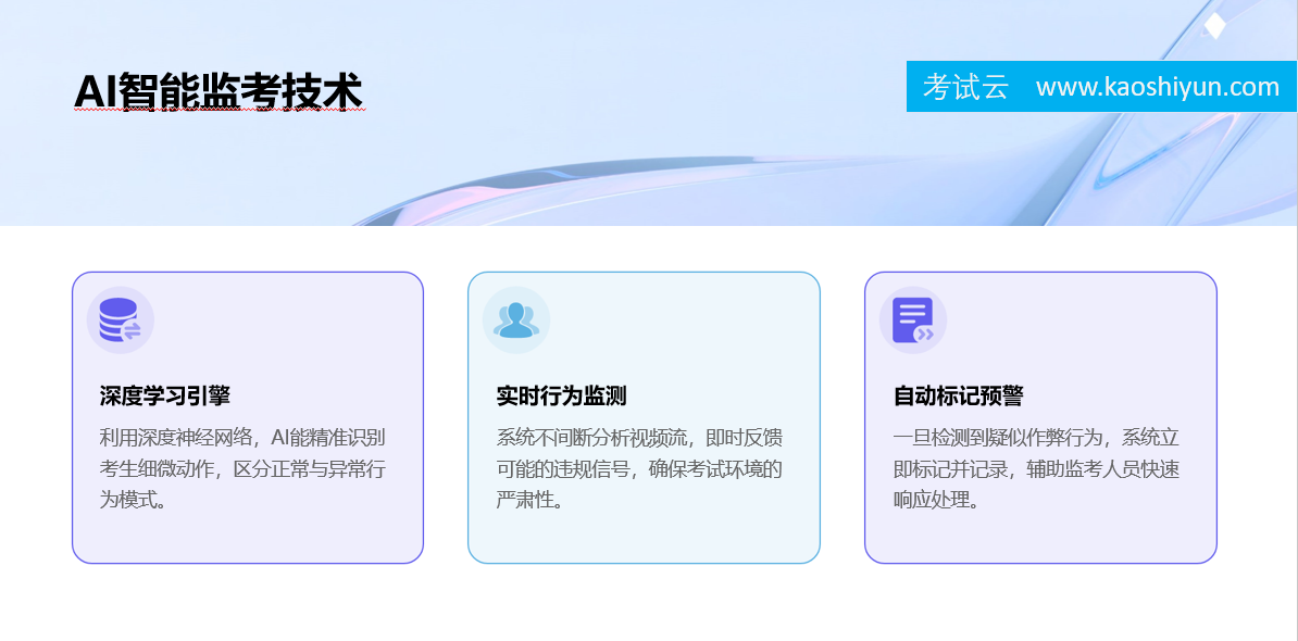 考试云的这三大核心技术相互协同,构建了一个全天候、全自动的智能监考体系,显著提升了考试过程的透明度与安全性,为严肃性考试提供了坚实的技术支撑。