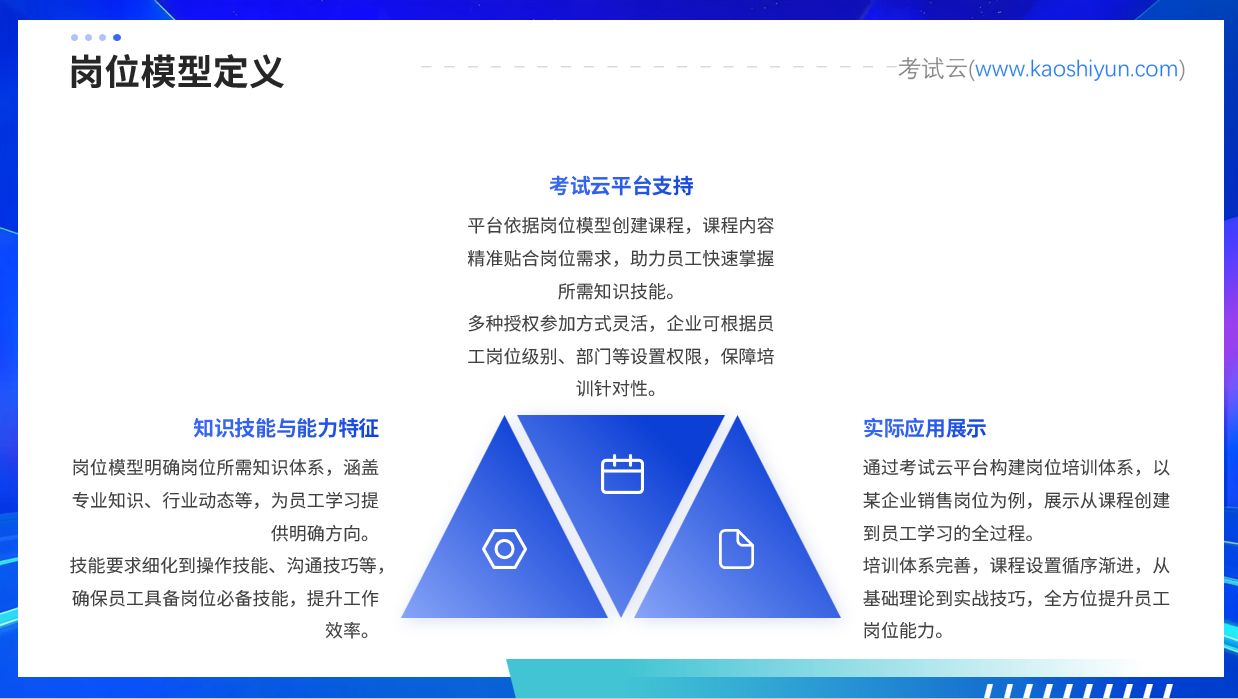 在当今这个快速发展的时代,企业之间的竞争愈发激烈。为了在市场中立于不败之地,企业需要不断提升员工的专业技能和综合素质。而在线培训学习平台,正是实现这一目标的重要工具。考试云,作为一个集考试、练习、培训学习于一体的在线培训考试系统云平台,致力于为企业提供高效、便捷、全面的员工在线培训解决方案。本文将从岗位模型构建、胜任力学习、学习型组织构建等多个方面,详细介绍考试云如何助力企业打造高效员工在线培训学习平台。