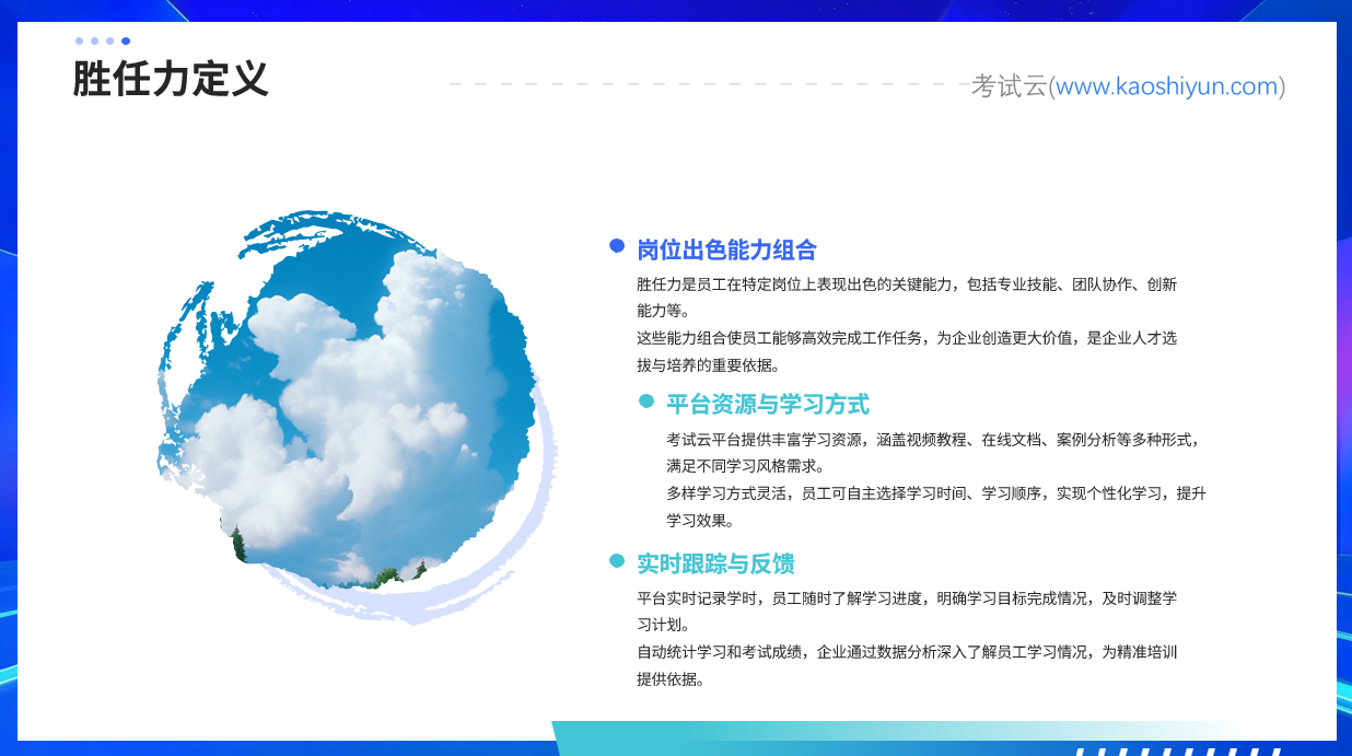 通过考试云平台,员工可以不断提升自己的胜任力水平,为企业创造更多的价值。同时,企业也可以通过胜任力学习,不断提升员工队伍的整体素质和能力水平。