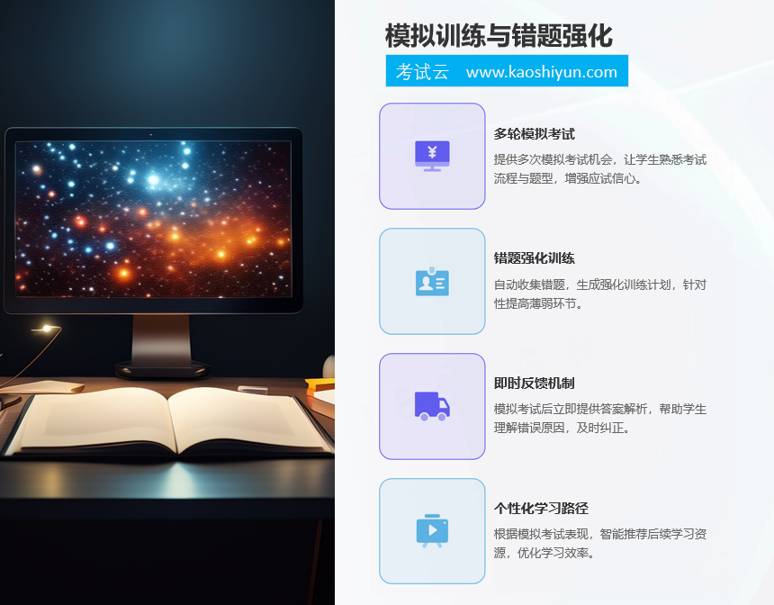 此外,平台还支持多轮模拟考试与错题强化训练,帮助学生查漏补缺,巩固知识体系,从而全面提升学习效果。这种智能化的考试管理方式,不仅减轻了教师负担,也为学生提供了更具针对性的学习路径。