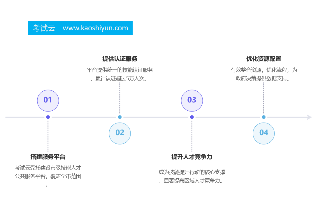考试云,学、练、考、证一体化平台,赋能技能认证。